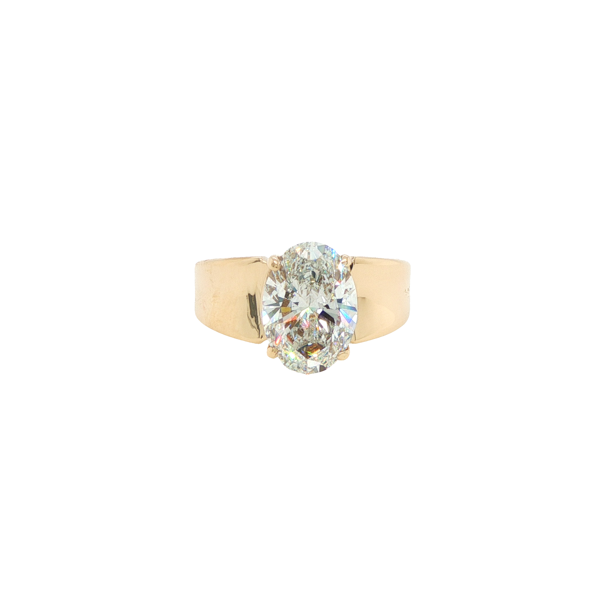 Elevate your elegance with this timeless solitaire ring, showcasing a stunning 3.04 ct oval-cut VVS 2 F color diamond with a brilliant cutting style. The classic design is crafted from lustrous 14K yellow gold, creating a harmonious blend of warmth and sophistication. Perfect for marking life's most precious moments.
