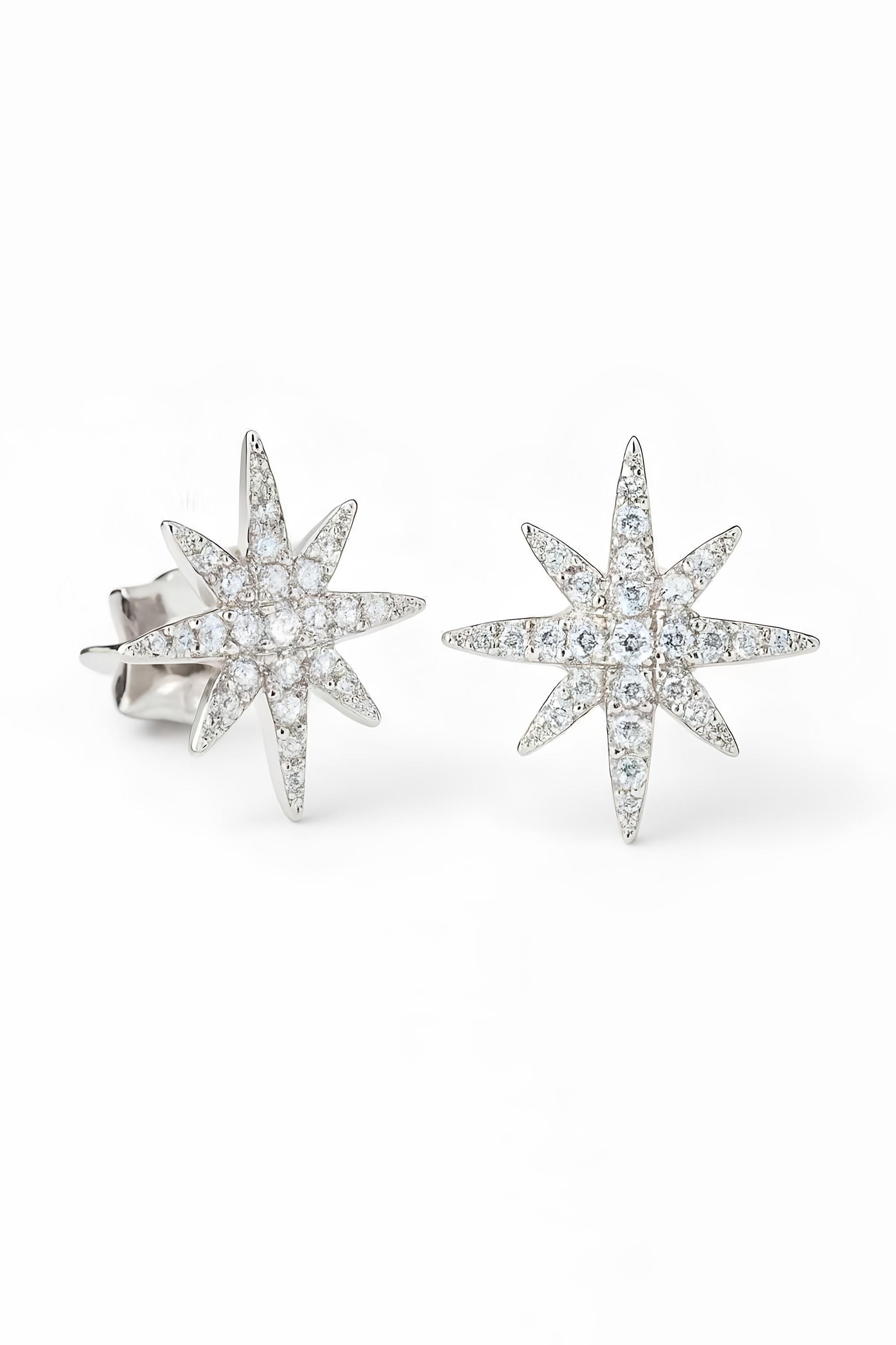 Twinkling 1.00 ctw. (carat total weight) White Moissanite adorn these Sterling Silver stud earrings with a platinum overlay to prevent tarnishing. Follow the stars! Also available in 14k white or yellow gold.